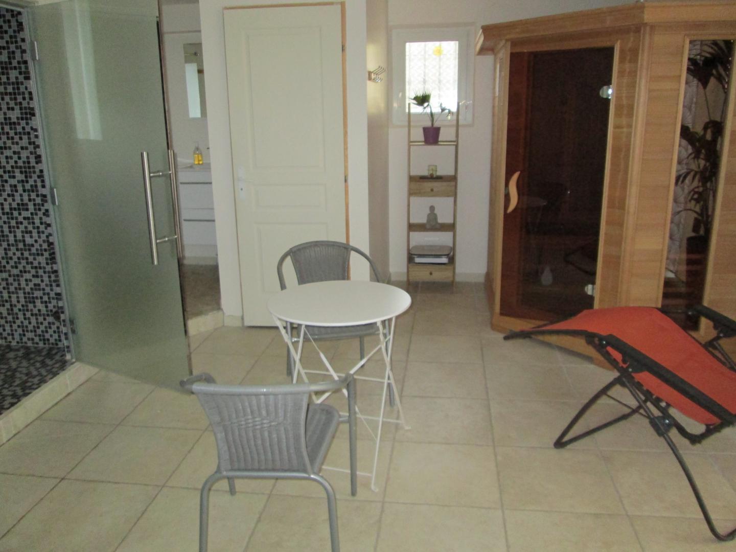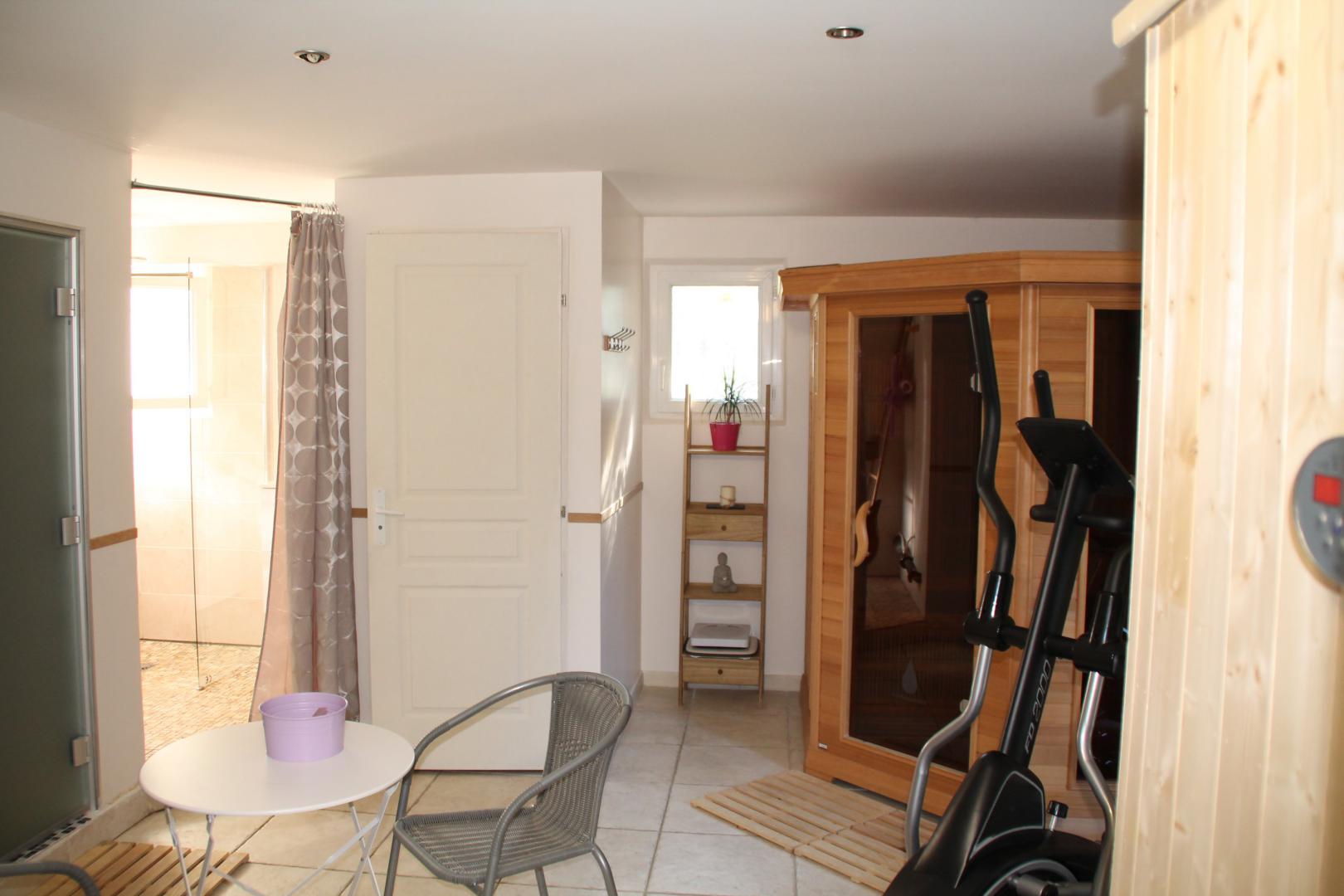 Vous y trouverez un véritable hammam en mosaïque, un grand sauna infrarouge, un sauna à pierre chaude et du matériel professionnel de Fitness.
